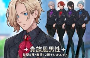 【立ち絵素材】貴族風の麗人系男性キャラクター5種|髪型バリエーション・表情13種